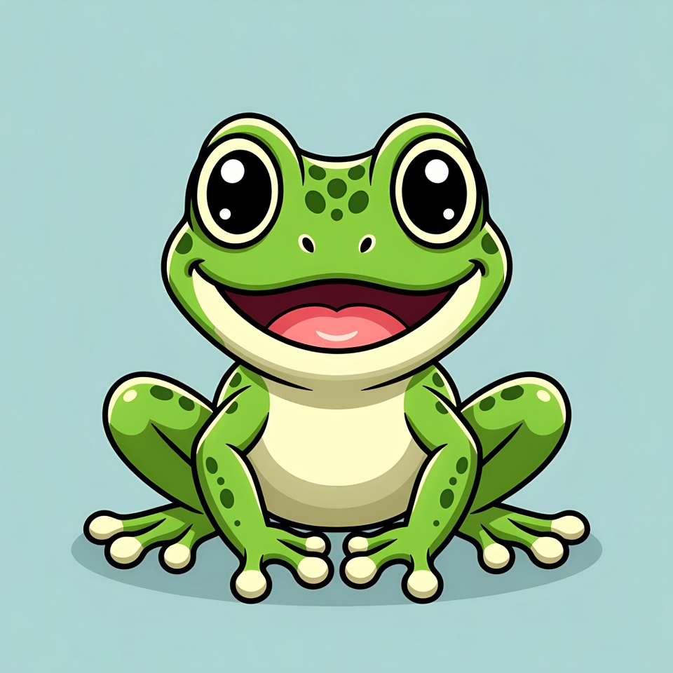 amphibian, animal, big eyes, cartoon frog, clipart, cute frog, drawing, fun, green frog, happy frog, illustration, isolated background, kawaii, smiling frog, spots, vector, frog