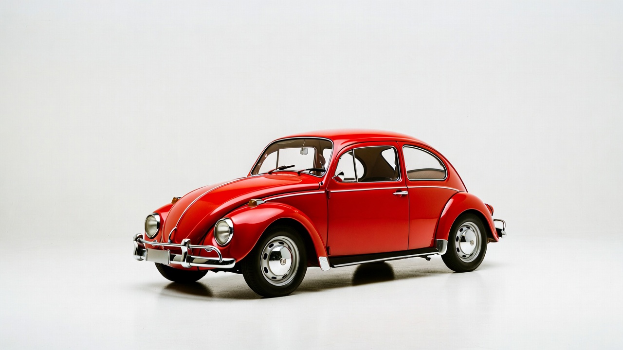 1960s car, Beetle car, German car, VW Beetle, chrome bumper, classic Beetle, classic car, compact car, isolated car, model car, red Volkswagen, red car, red vehicle, round headlights, studio photo, toy car, vintage car, white background, whitewall tires, Volkswagen Beetle