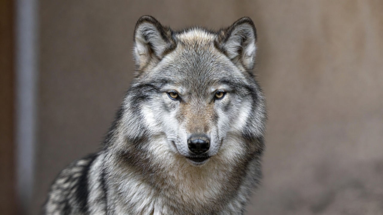 Gray wolf close-up portrait