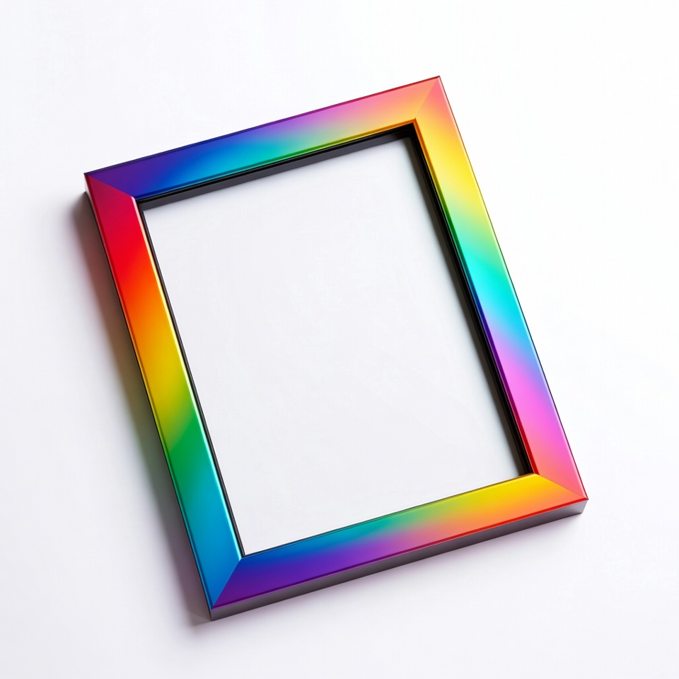 art frame, colorful frame, decorative frame, empty frame, glossy frame, gradient frame, isolated background, multicolored border, photo frame, picture frame, rainbow colors, rectangular frame, vibrant colors, white background, rainbow frame