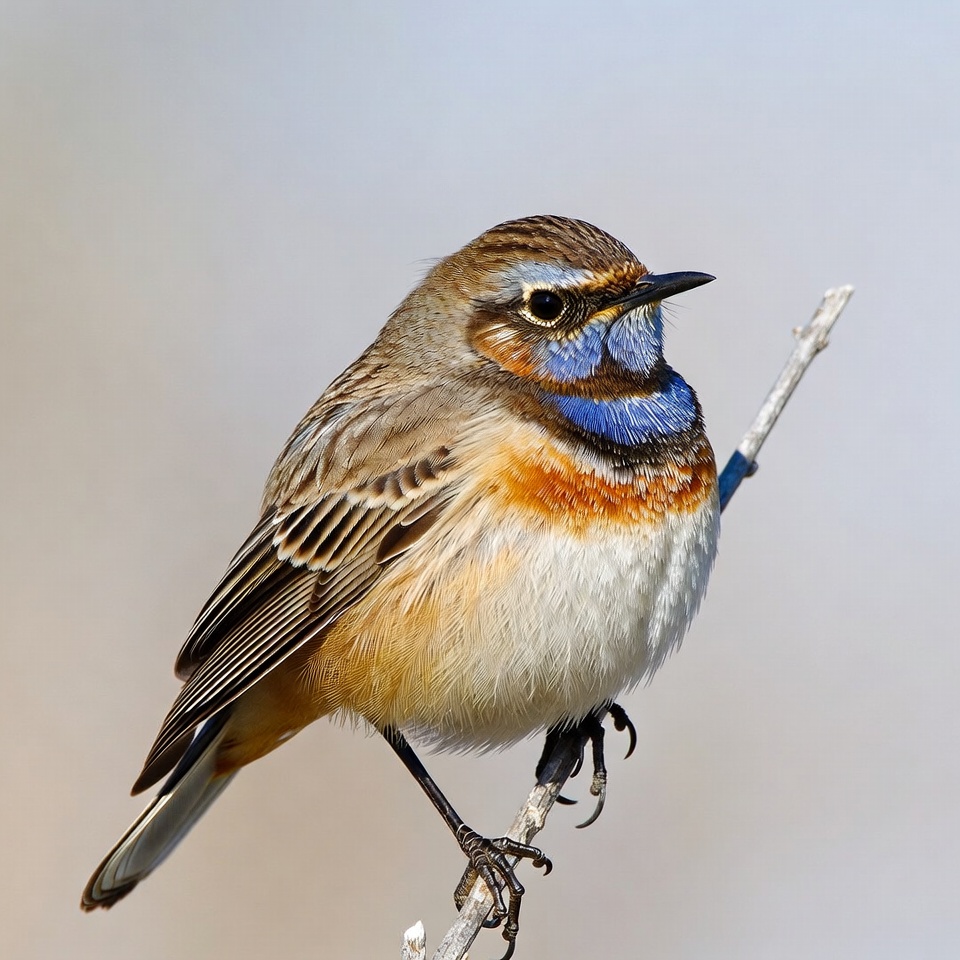 animal, avian, beak, bird, blue eye stripe, branch, brown feathers, claws, feathers, isolated background, nature, orange chest, perched, white belly, wildlife, whinchat