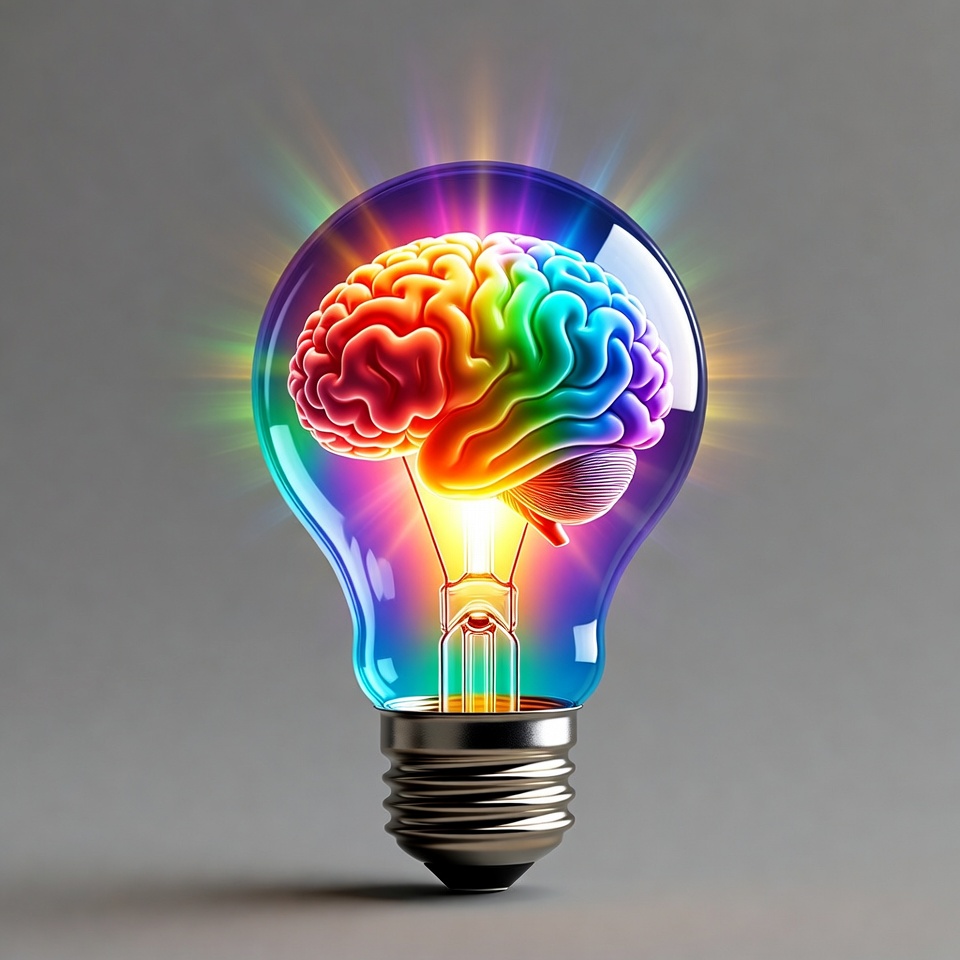Rainbow Brain Lightbulb Illustration