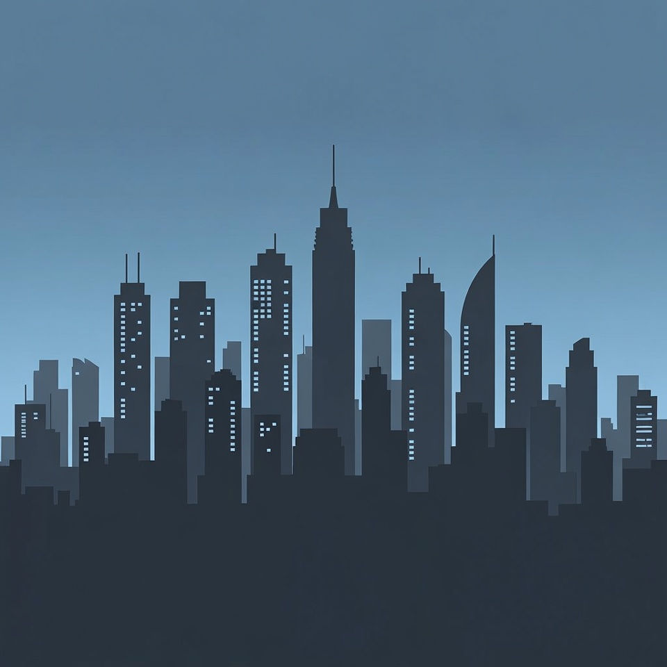 Empire State Building, Manhattan skyline, NYC skyline, black silhouette, blue sky, city skyline, cityscape, gradient sky, illustration, isolated background, silhouette, skyscrapers, tall buildings, urban skyline, vector art, New York skyline
