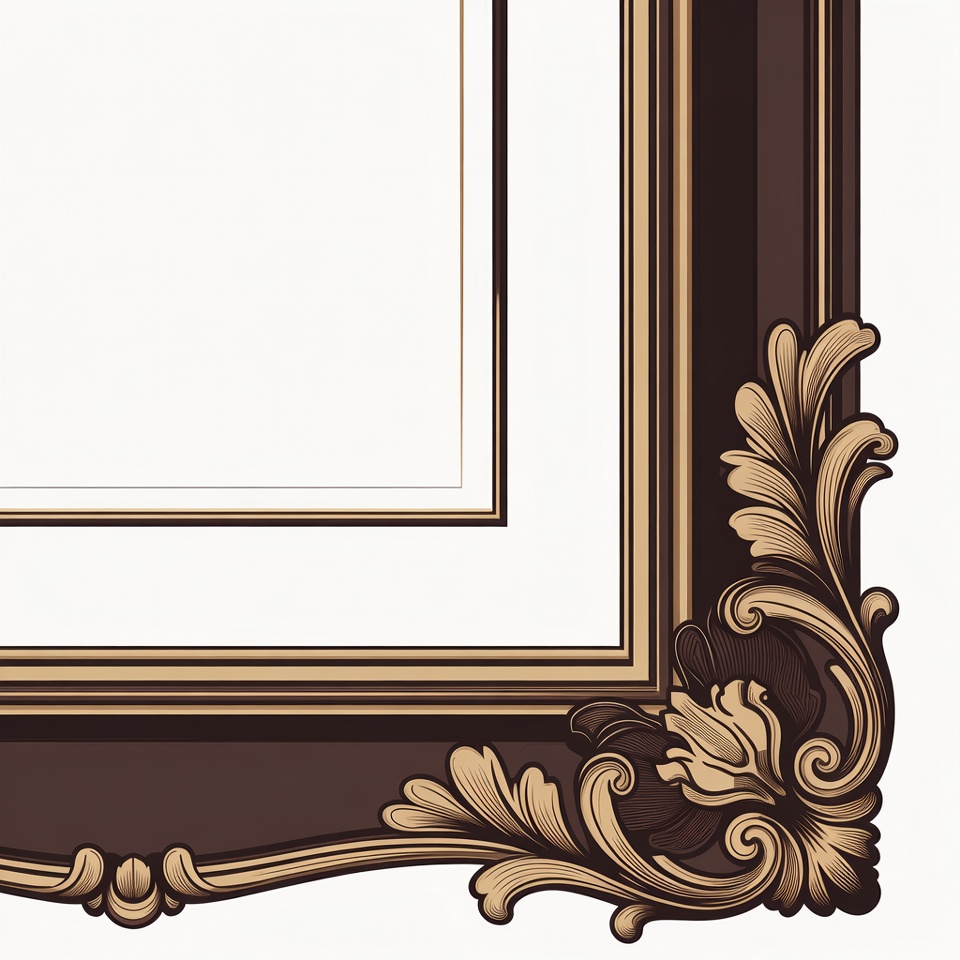art frame, baroque frame, border, brown frame, clipart, decoration, decorative frame, elegant frame, empty frame, filigree, floral design, gold frame, illustration, isolated background, ornate frame, photo frame, scrollwork, vintage frame, white background, picture frame