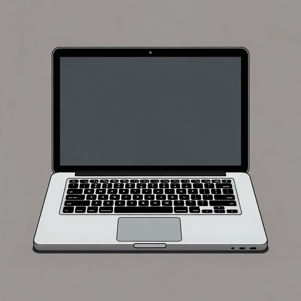 MacBook, clipart, computer, device, illustration, isolated background, keyboard, line art, notebook computer, open laptop, screen, silver laptop, technology, trackpad, vector, laptop