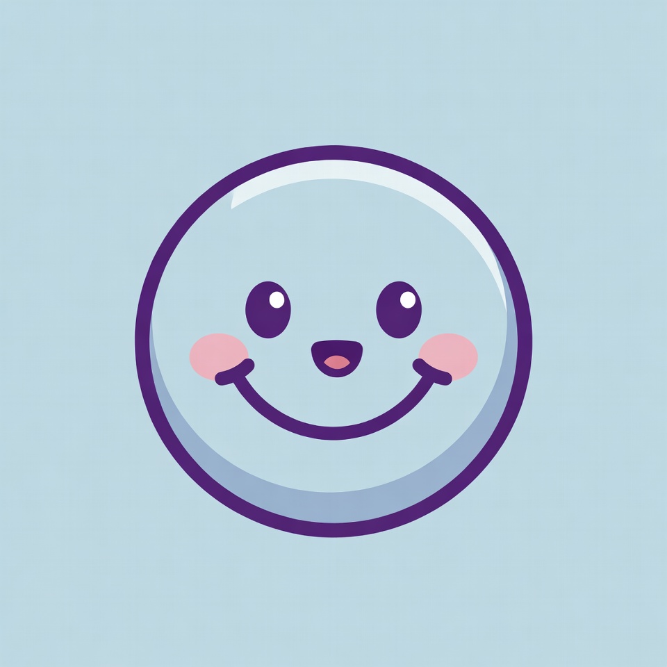 big eyes, clipart, cute face, emoticon, happy emoji, illustration, isolated background, kawaii, light blue background, purple outline, rosy cheeks, smiling face, vector art, wide smile, cartoon face