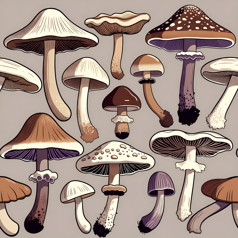 Variety of Mushrooms Illustration