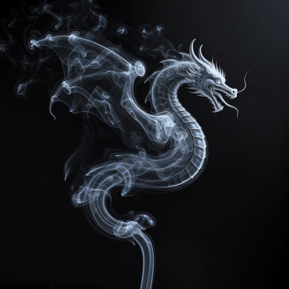Smoke Dragon Illustration on Black Background