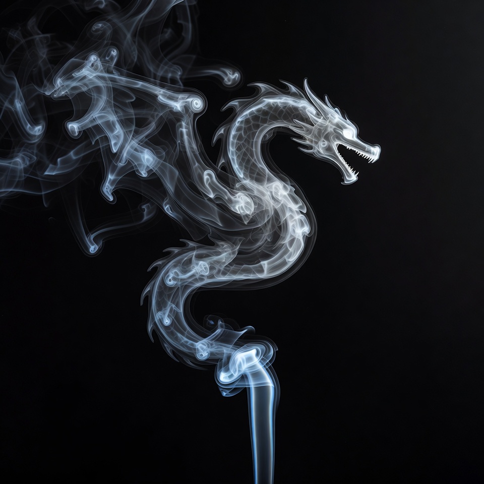 White smoky dragon on black