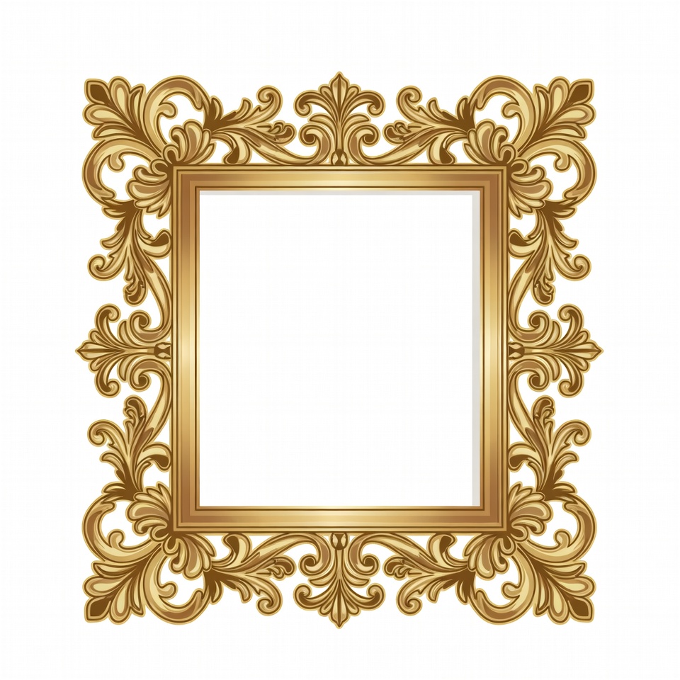 baroque frame, blank frame, clipart, decorative frame, elegant frame, empty frame, floral design, golden border, illustration, isolated background, luxury frame, ornate frame, photo frame, picture frame, rococo frame, scrollwork, vector art, vintage frame, gold frame