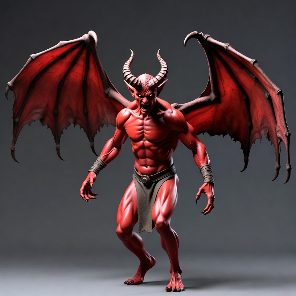 3D render, CGI, bat wings, claws, dark background, devil, fangs, fantasy creature, horns, illustration, isolated, loincloth, muscular, muscular demon, red demon, red skin, snarling, demon