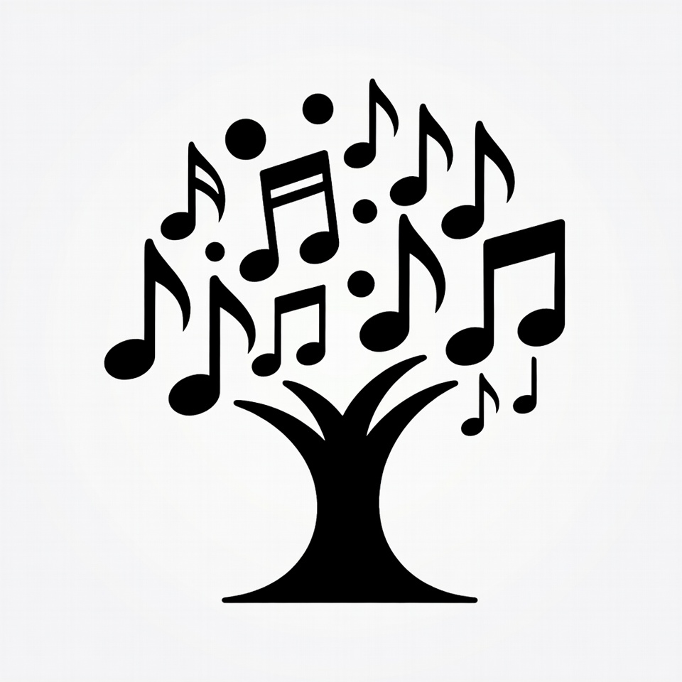 black white, clipart, isolated background, music notes tree, music symbol, musical notes, musical tree, notes branches, silhouette, tree illustration, tree shape, vector art, music tree