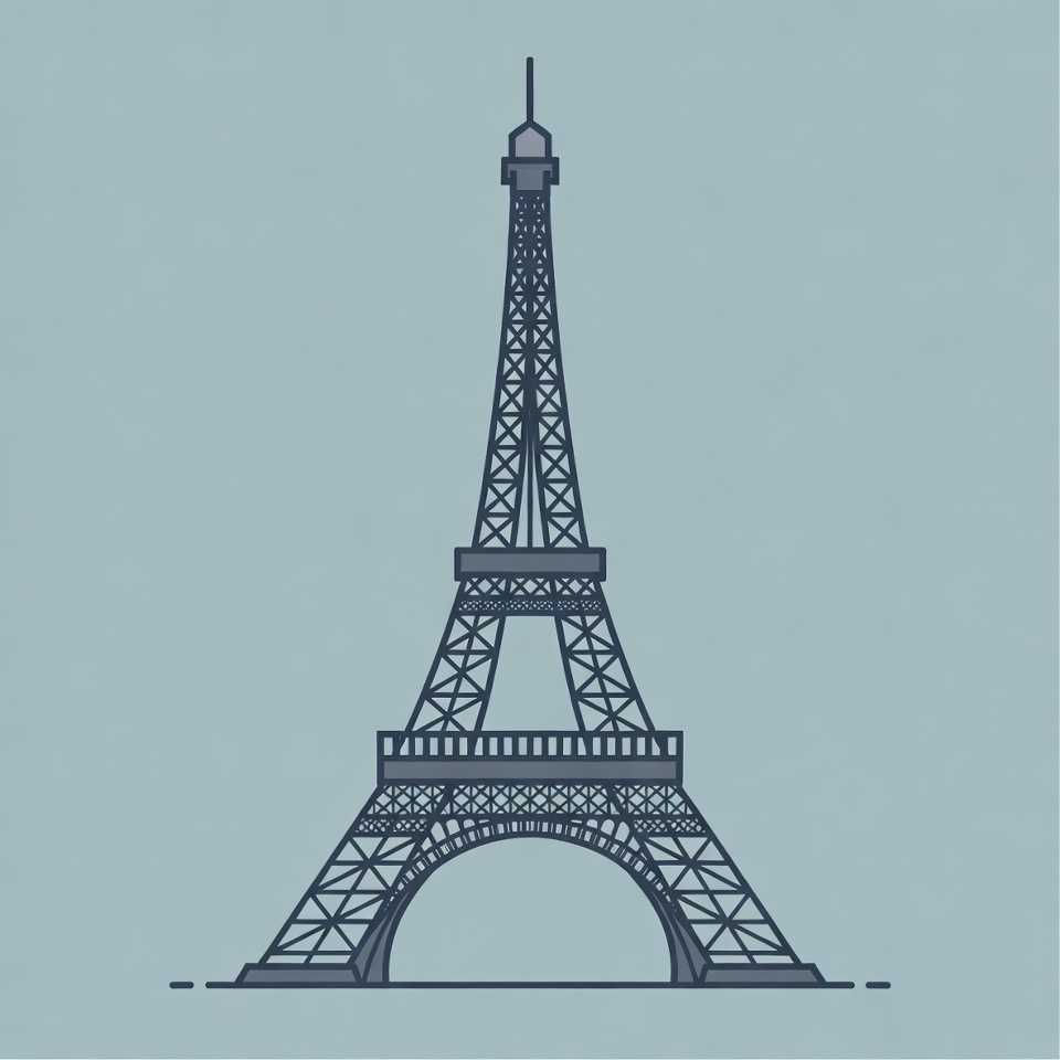 France, Paris, architecture, blue background, clipart, flat design, illustration, iron tower, isolated background, landmark, line art, simple drawing, tourist attraction, travel icon, vector, Eiffel Tower