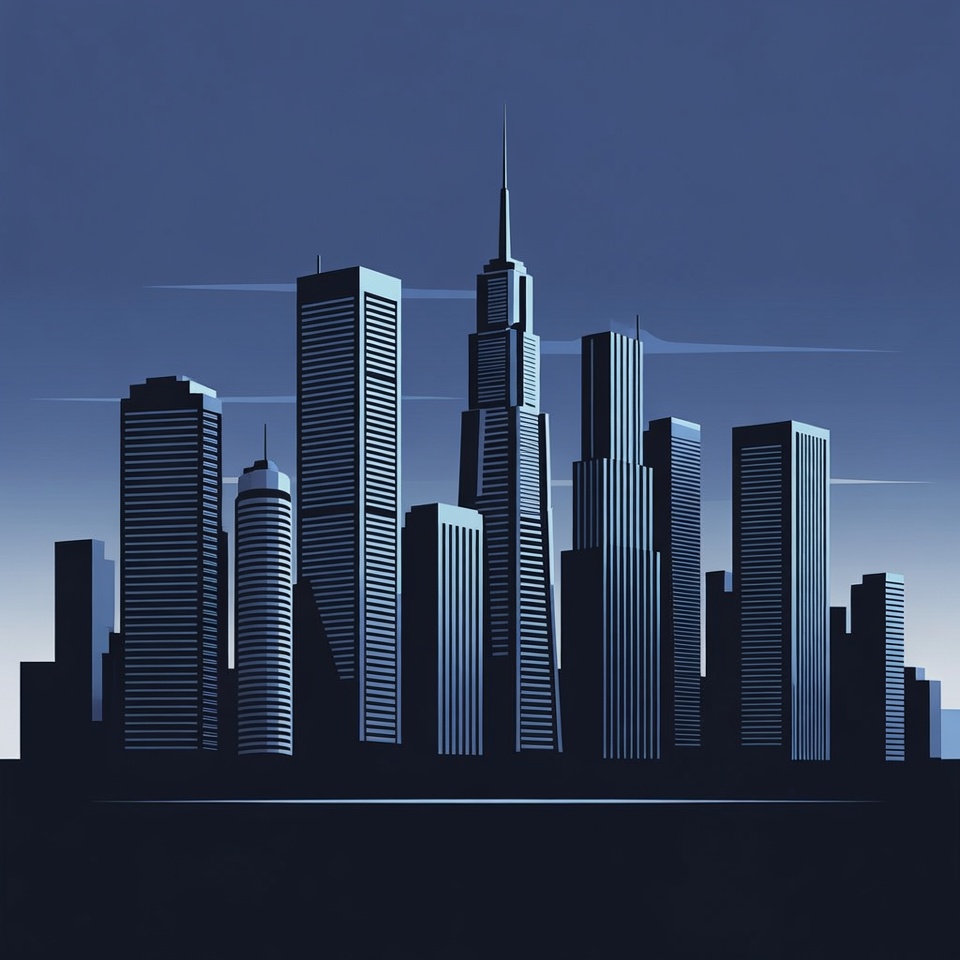 Willis Tower, architecture, blue sky, city silhouette, cityscape, clipart, gradient background, high-rises, illustration, isolated background, modern architecture, night skyline, silhouette, skyline, skyscrapers, tall buildings, urban landscape, vector art, Chicago skyline
