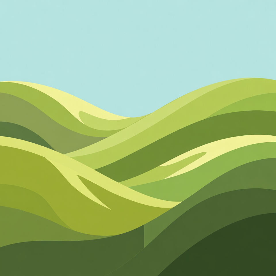 abstract nature, blue sky, clipart, fields, green landscape, illustration, isolated background, landscape, nature, outdoors, rolling hills, scenery, vector art, wavy hills, green hills