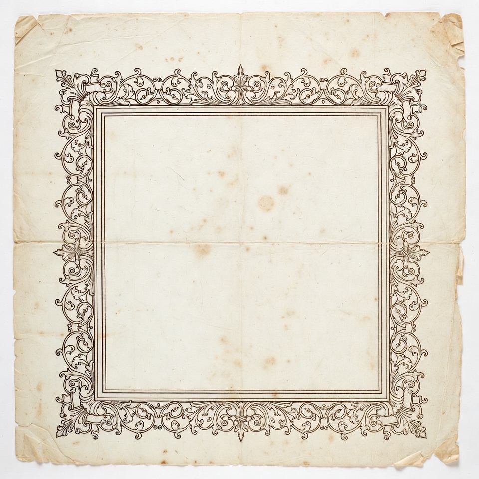 aged paper, aged texture, antique paper, baroque border, blank frame, blank parchment, classic frame, decorative border, decorative frame, elegant frame, empty center, filigree border, floral border, floral design, historical frame, intricate frame, old paper, ornamental design, ornate border, ornate design, paper border, paper texture, parchment frame, scrollwork, textured paper, vintage background, vintage ornament, worn paper, yellowed paper, vintage frame