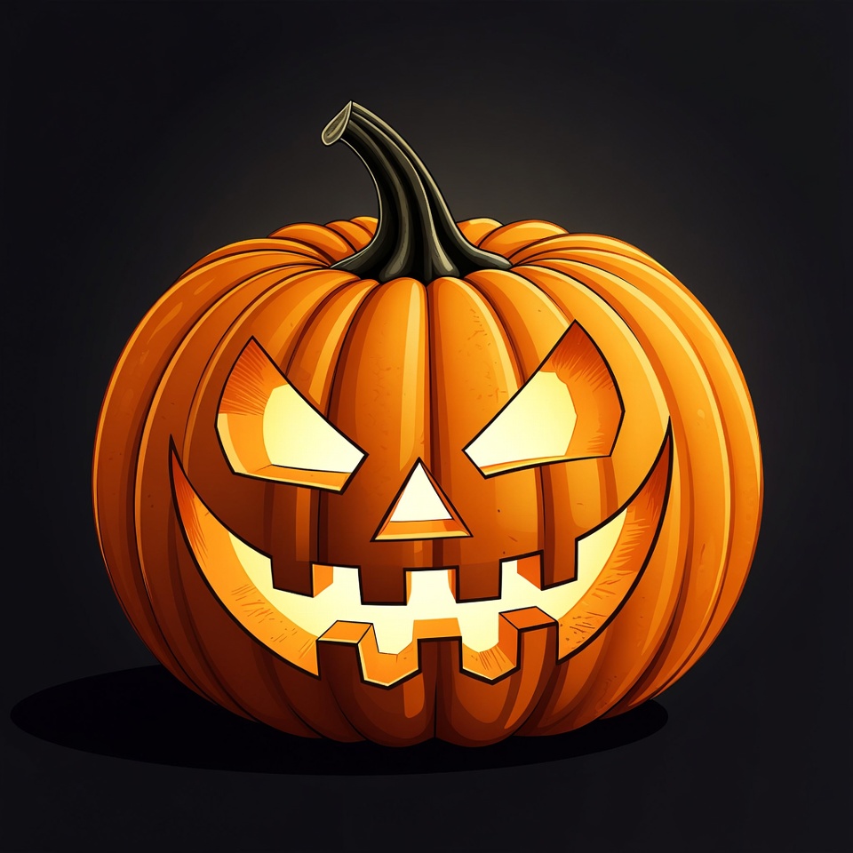 Halloween, Halloween decoration, carved face, carved pumpkin, clipart, glowing eyes, glowing mouth, green stem, illustration, isolated background, jack o lantern, orange pumpkin, pumpkin, spooky face, jack-o-lantern