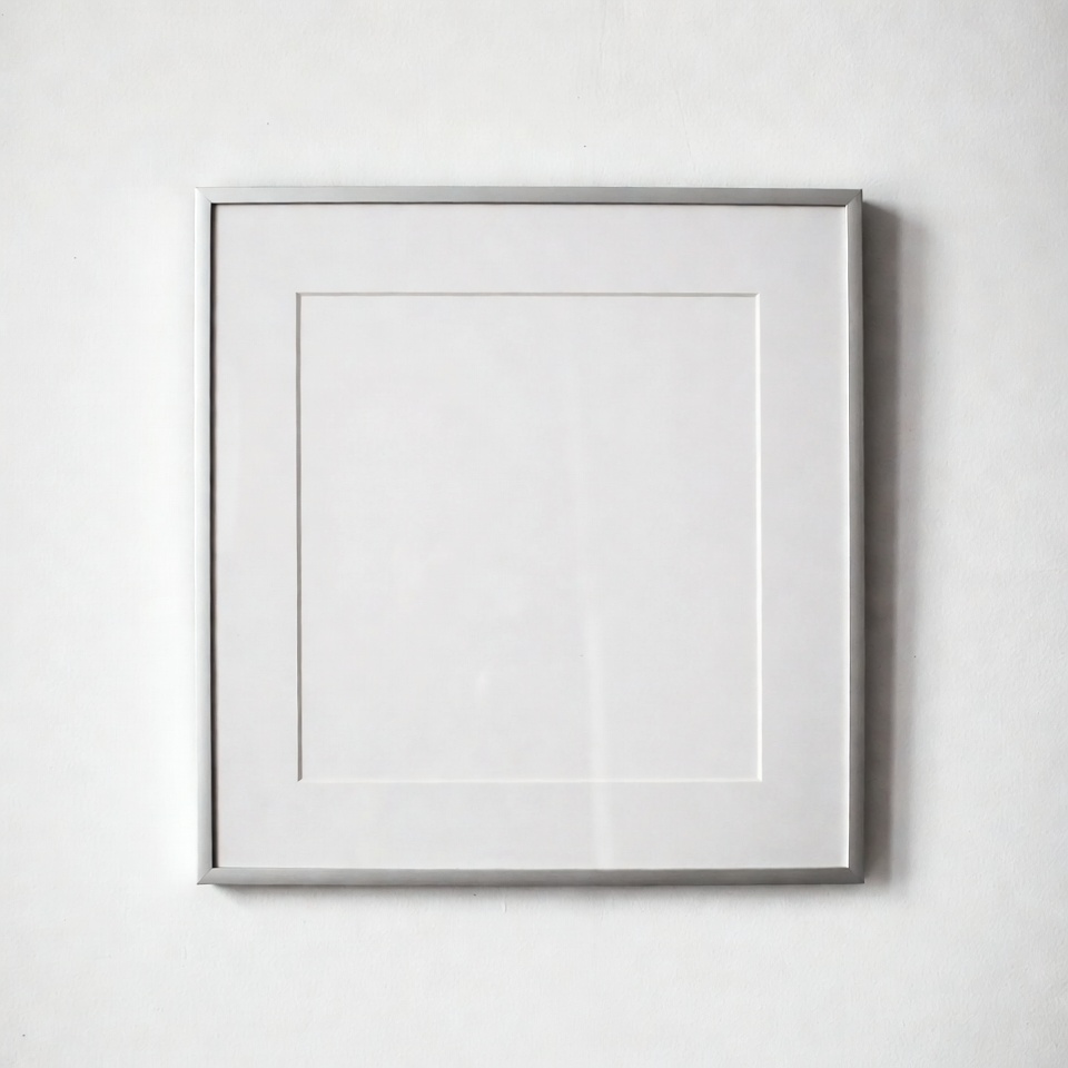 blank frame, empty frame, empty picture, frame mockup, hanging frame, isolated background, modern frame, photo frame, silver border, silver frame, wall art, white background, white mat, white wall, picture frame