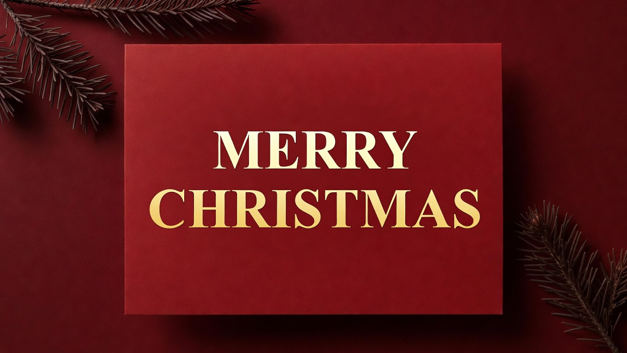 Merry Christmas Card on Red Background