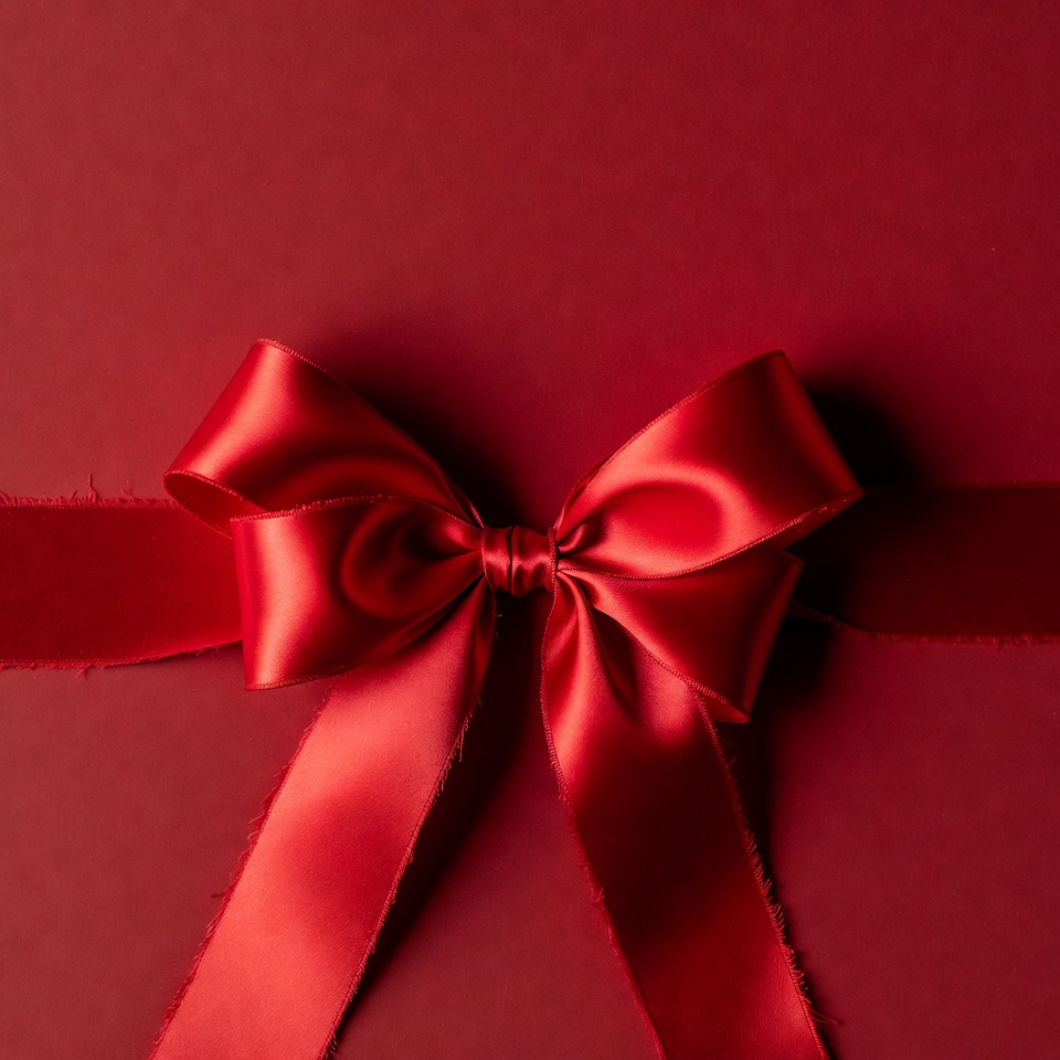 Red Satin Bow on Red Background