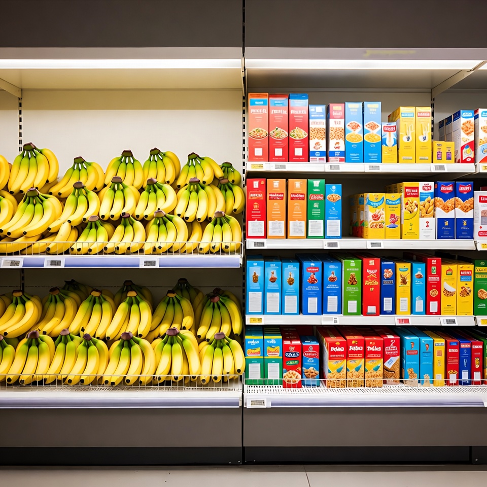 Bananas and Cereal Supermarket Shelves