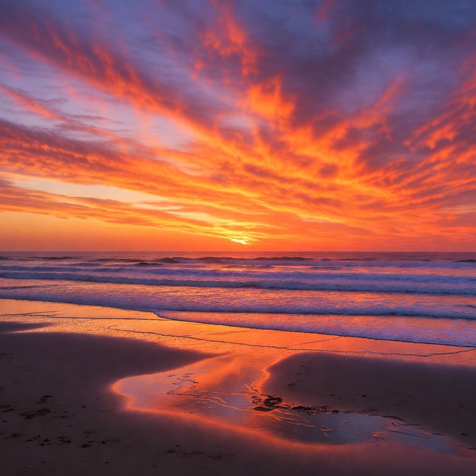 Vibrant Sunset over Ocean Beach