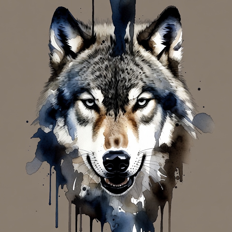 animal portrait, art print, black nose, blue drips, canine, detailed fur, digital illustration, fierce wolf, gray wolf, illustration, isolated background, predator, splatter art, watercolor, wild animal, wolf eyes, wolf face, wolf fur, wolf head, yellow eyes, wolf
