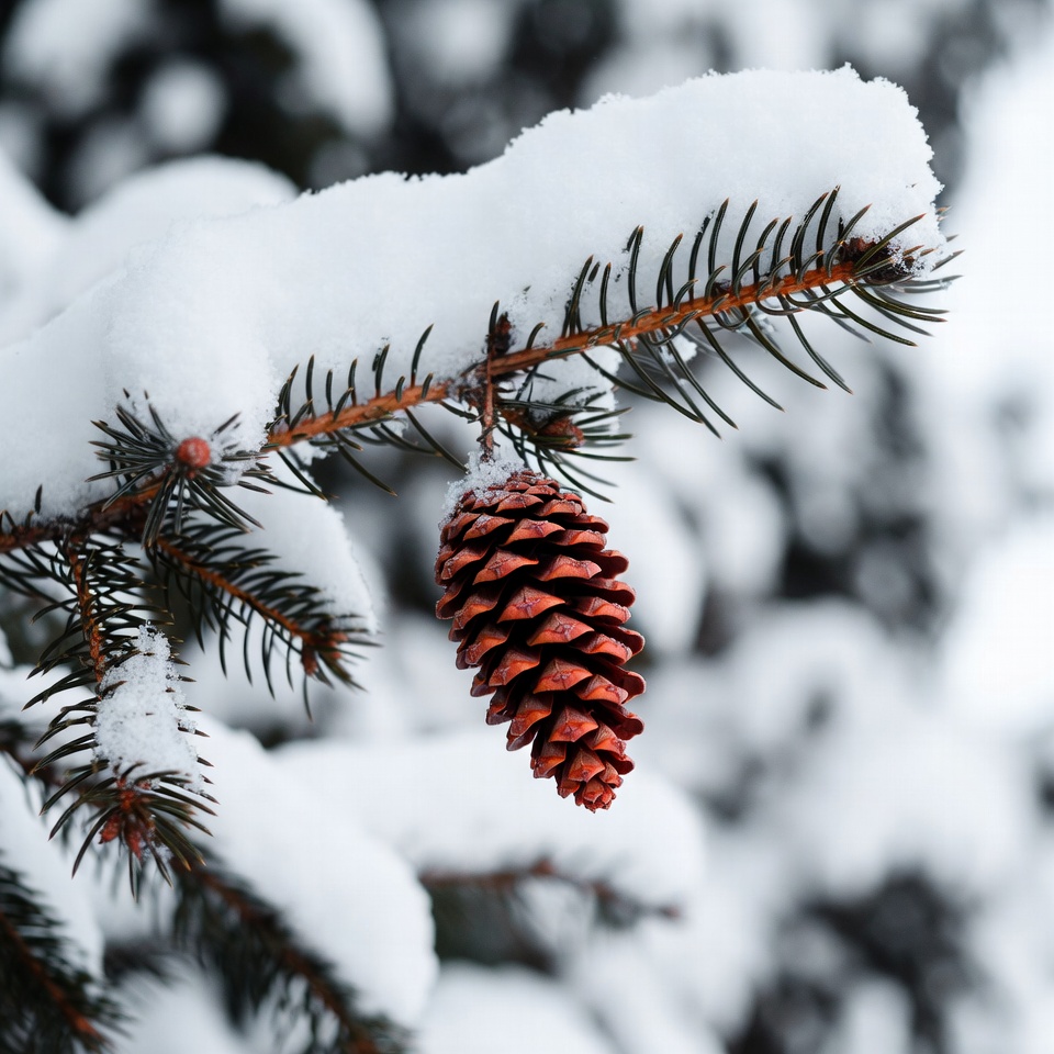 Snowy Pine Cone on Branch