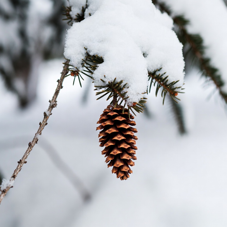 Christmas, brown cone, closeup, cold, conifer, evergreen, fir branch, forest, frozen, holiday, macro, natural, nature, needles, outdoors, pine tree, snow, snowy branch, spruce, tree branch, white snow, winter, woodsy, pine cone