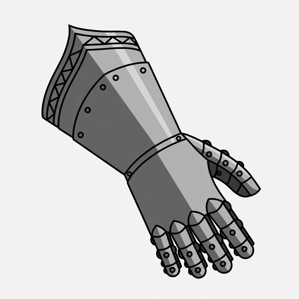 arm guard, clipart, elbow armor, engravings, fantasy armor, gauntlet, grey metal, hand armor, historical armor, illustration, isolated background, medieval armor, metal glove, plate armor, pointed guard, rivets, silver armor, vector art, warrior gear, knight gauntlet