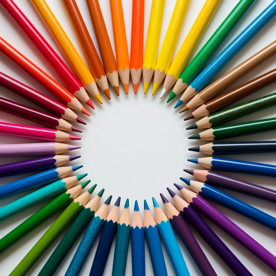 Colorful Pencils Arranged in Circle