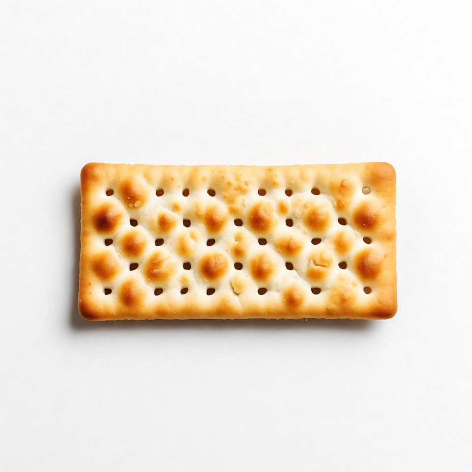 baked good, biscuit, closeup, cuisine, dotted surface, food, golden brown, holes, isolated, pastry, rectangular cracker, savory snack, snack, top view, wheat cracker, white background, cracker