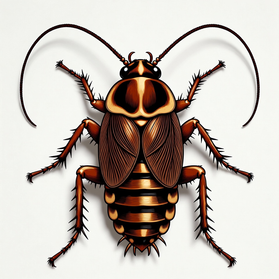 antennae, brown cockroach, bug, clipart, detailed drawing, exoskeleton, illustration, insect, isolated background, legs, pest, shiny bug, vector art, wings, cockroach