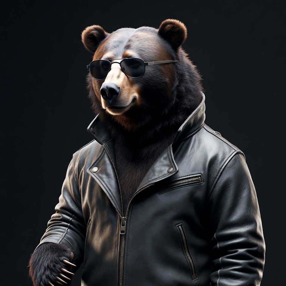 Bear wearing sunglasses and leather jacket