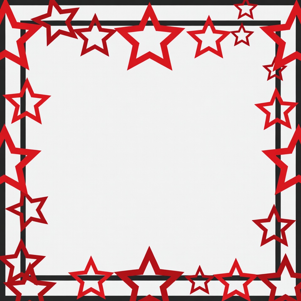 black outline, border, clipart, decorative border, five-pointed stars, frame, graphic, illustration, isolated background, red, square frame, star border, stars, white background, red stars