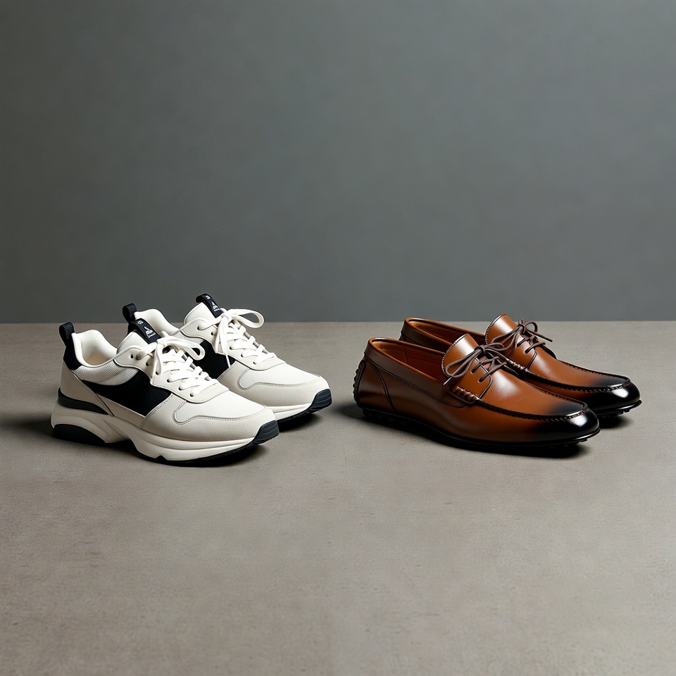 White Sneakers and Brown Loafers
