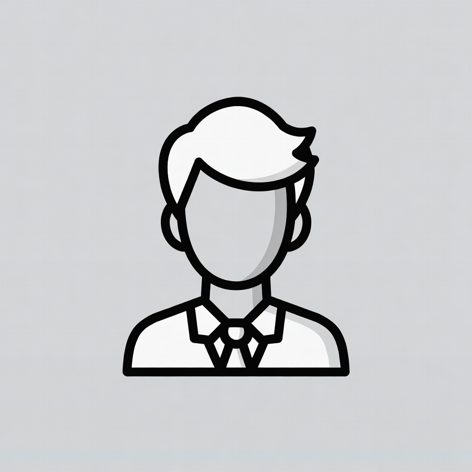 A simple line art icon depicts a man with short hair wearing a white collared shirt and tie. His face is blank and featureless. The illustration is outlined in black on a light gray background.
