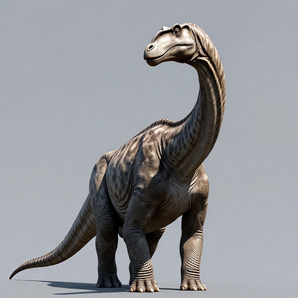 3D render, Apatosaurus, Jurassic, digital illustration, dinosaur, diplodocus, extinct animal, fossil, gray background, isolated background, long neck, paleo art, prehistoric, reptile, sauropod, standing, Brontosaurus