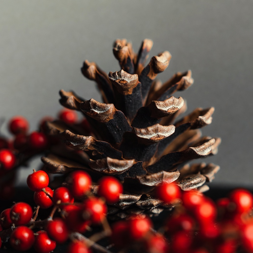 Pine Cone with Red Berries