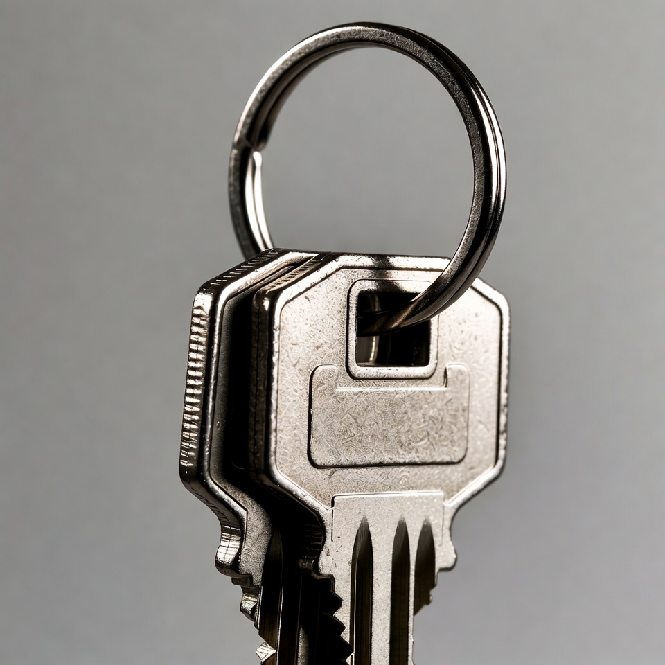 close-up, door keys, gray background, house keys, isolated background, key holder, key ring, keychain, lock keys, metal keys, notched keys, shiny metal, silver keys, square bow, keys