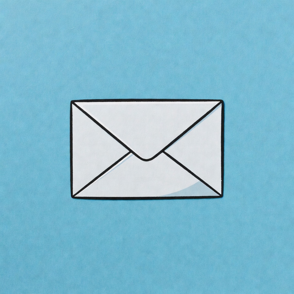 A simple white envelope with a flap is centered on a solid light blue background. The envelope features clean black outlines and subtle shading for a cartoonish illustration style. It is isolated with ample space around it.