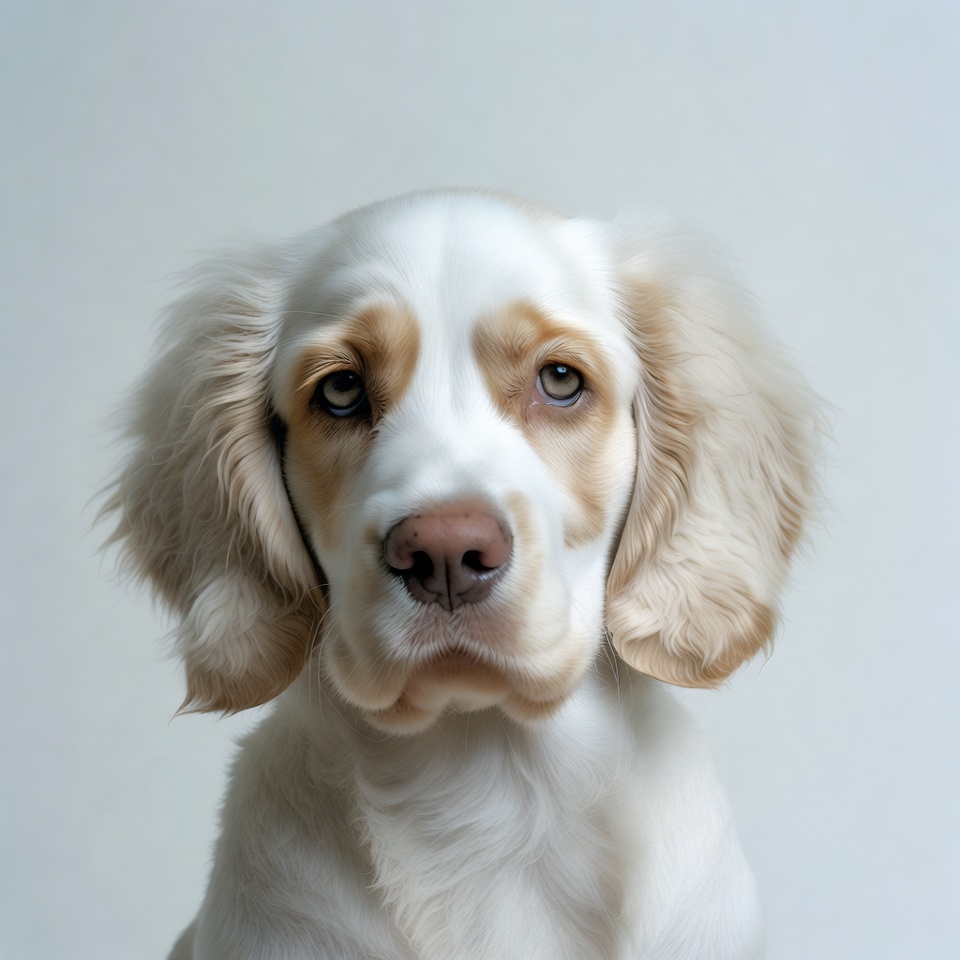 English Springer Spaniel, animal, brown markings, brown nose, canine, dog, fluffy fur, isolated background, long ears, pet, purebred dog, sad eyes, spaniel puppy, white dog, puppy