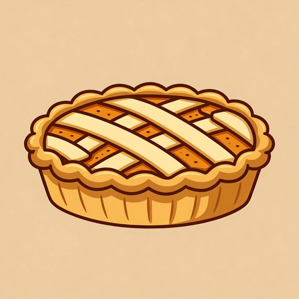 baked good, beige dish, cartoon pie, clipart, dessert, food illustration, golden crust, illustration, isolated background, lattice crust, pastry, pie, round pie, scalloped edges, apple pie