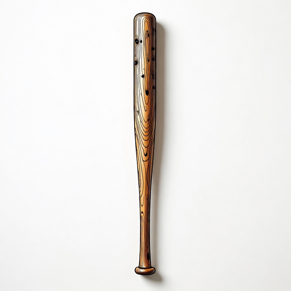 baseball, bat, black dots, brown bat, game bat, illustration, isolated background, sports equipment, vertical bat, wood grain, wooden bat, baseball bat