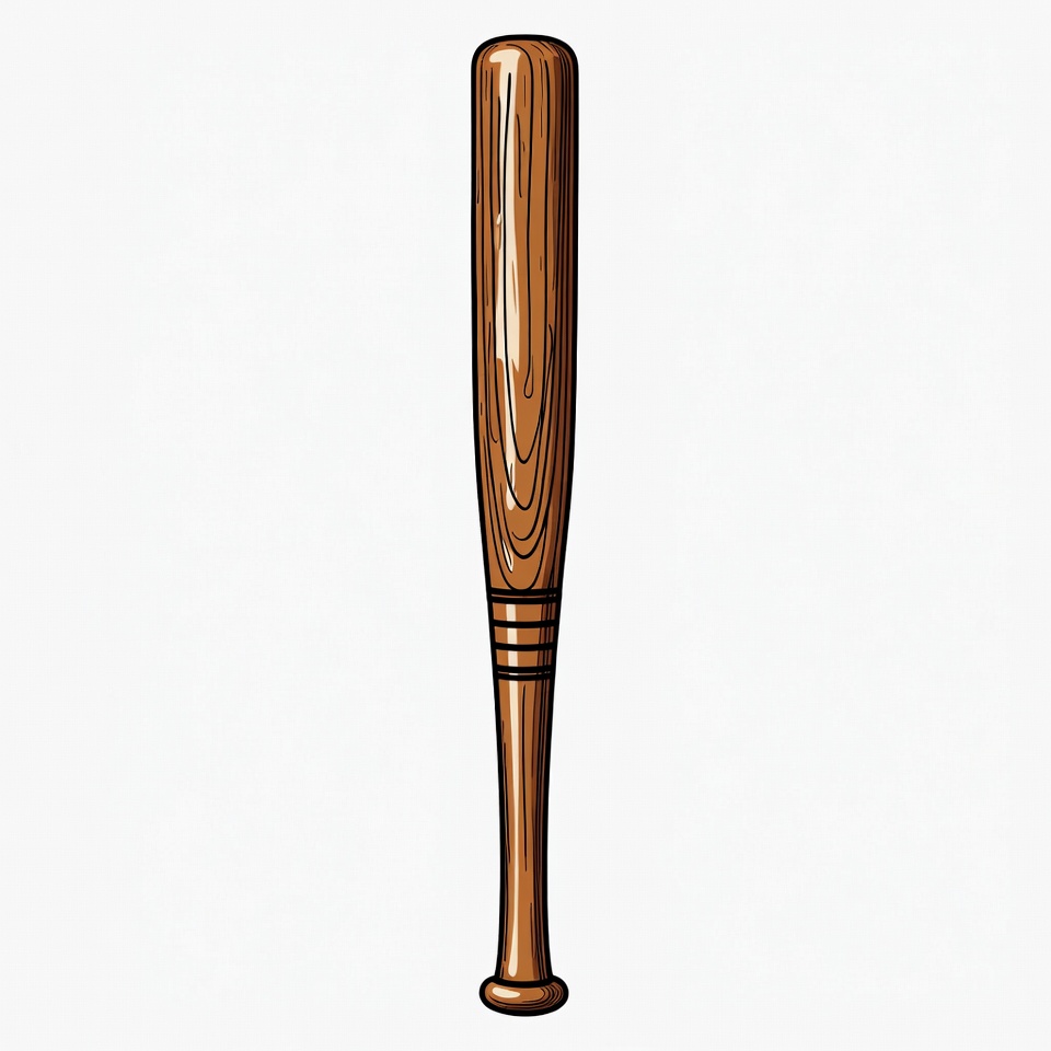 baseball, bat, clipart, drawing, illustration, isolated background, sports equipment, vector, wood grain, wooden baseball bat, wooden bat, baseball bat