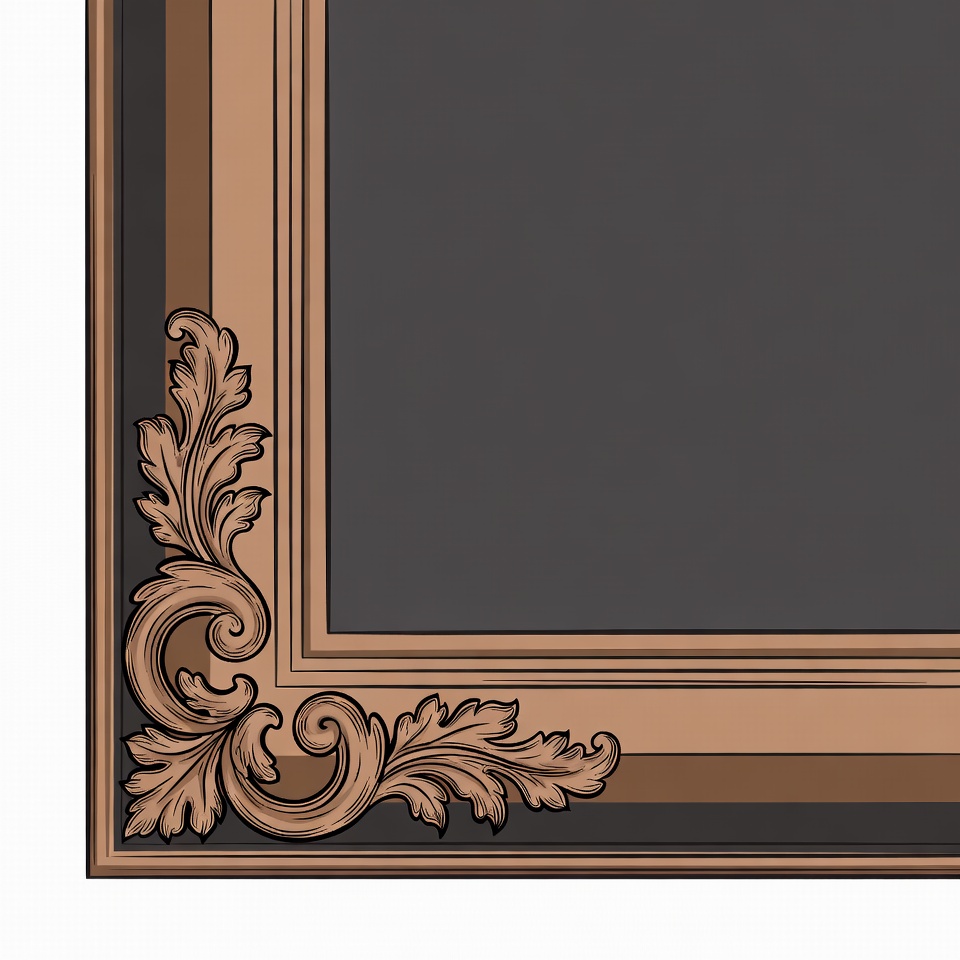 art frame, baroque frame, border design, brown tones, clipart, corner ornaments, decorative frame, elegant frame, empty frame, filigree, floral design, gold frame, golden frame, gray interior, illustration, isolated background, luxury frame, ornate frame, photo frame, rococo frame, scrollwork, vintage frame, picture frame