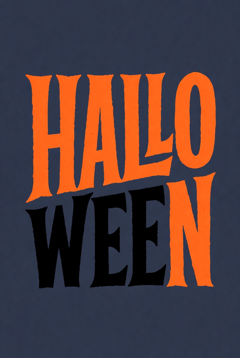 Halloween text, October, black text, bold letters, clipart, festive, font, graphic design, holiday, illustration, isolated background, navy background, orange text, spooky, typography, Halloween
