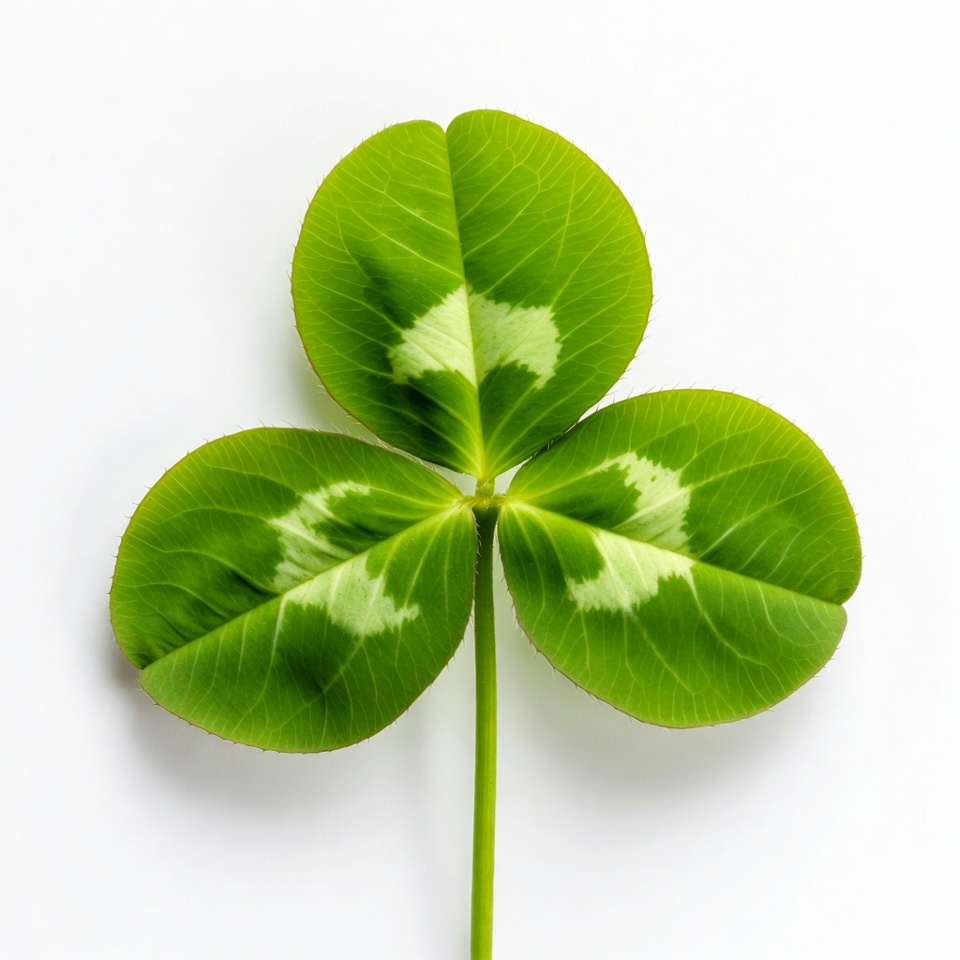 St Patricks, clover, four leaves, green clover, green plant, isolated, leaf, leaves, luck, lucky clover, nature, plant, shamrock, stem, white background, white veins, four-leaf clover