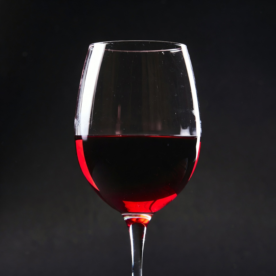 Red wine glass on black background