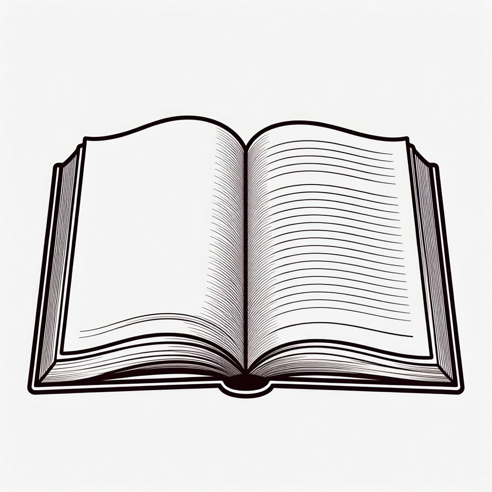 blank pages, book, clipart, drawing, graphic, illustration, isolated background, line art, lines, pages, reading, sketch, spine, vector, open book